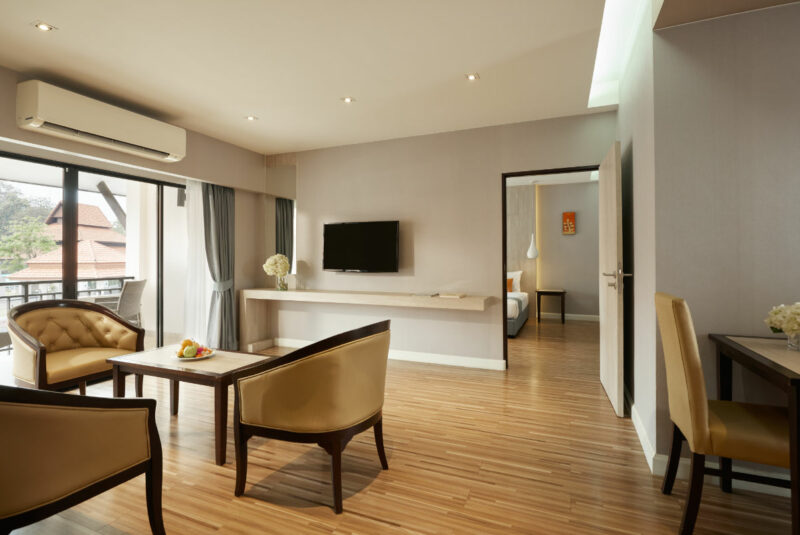 Enjoy views of the lake and sunrise from your private balcony or enjoy the pool view. Comfortable stay with modern and tasteful room size 39 SQM.