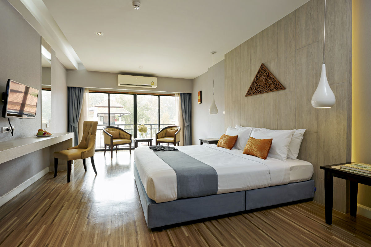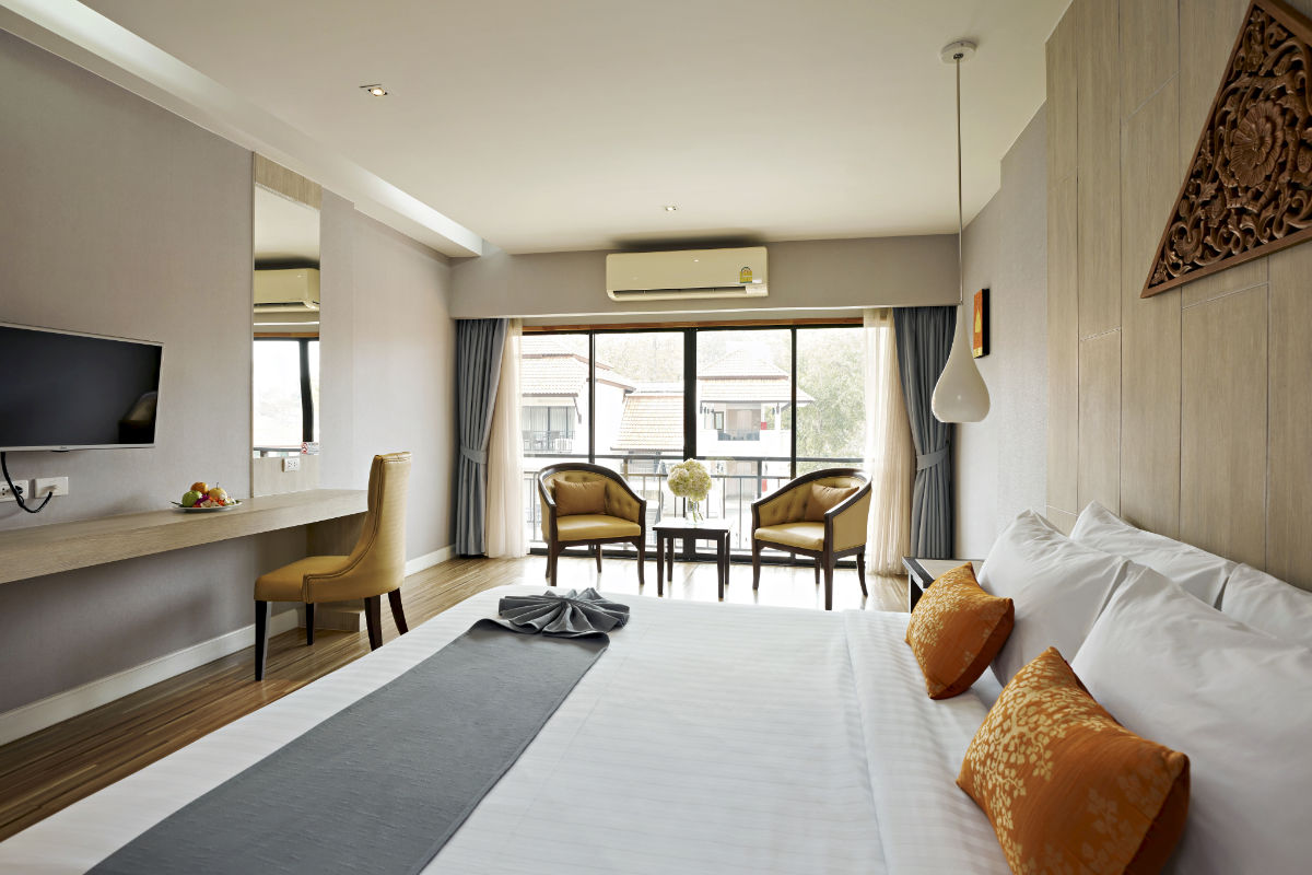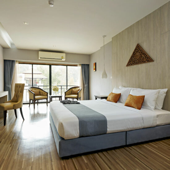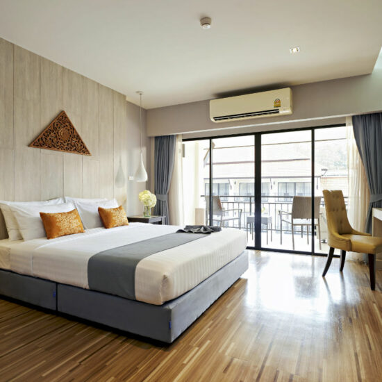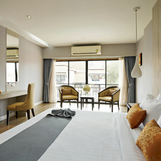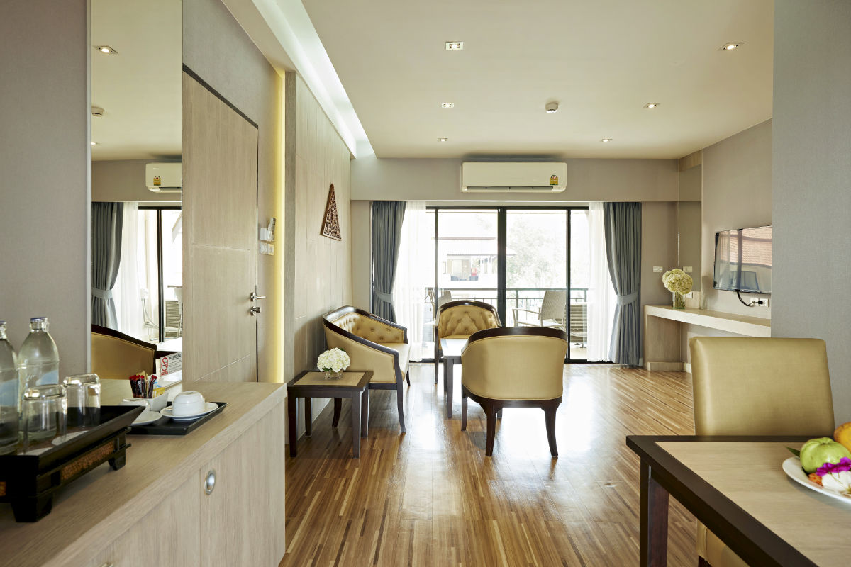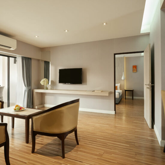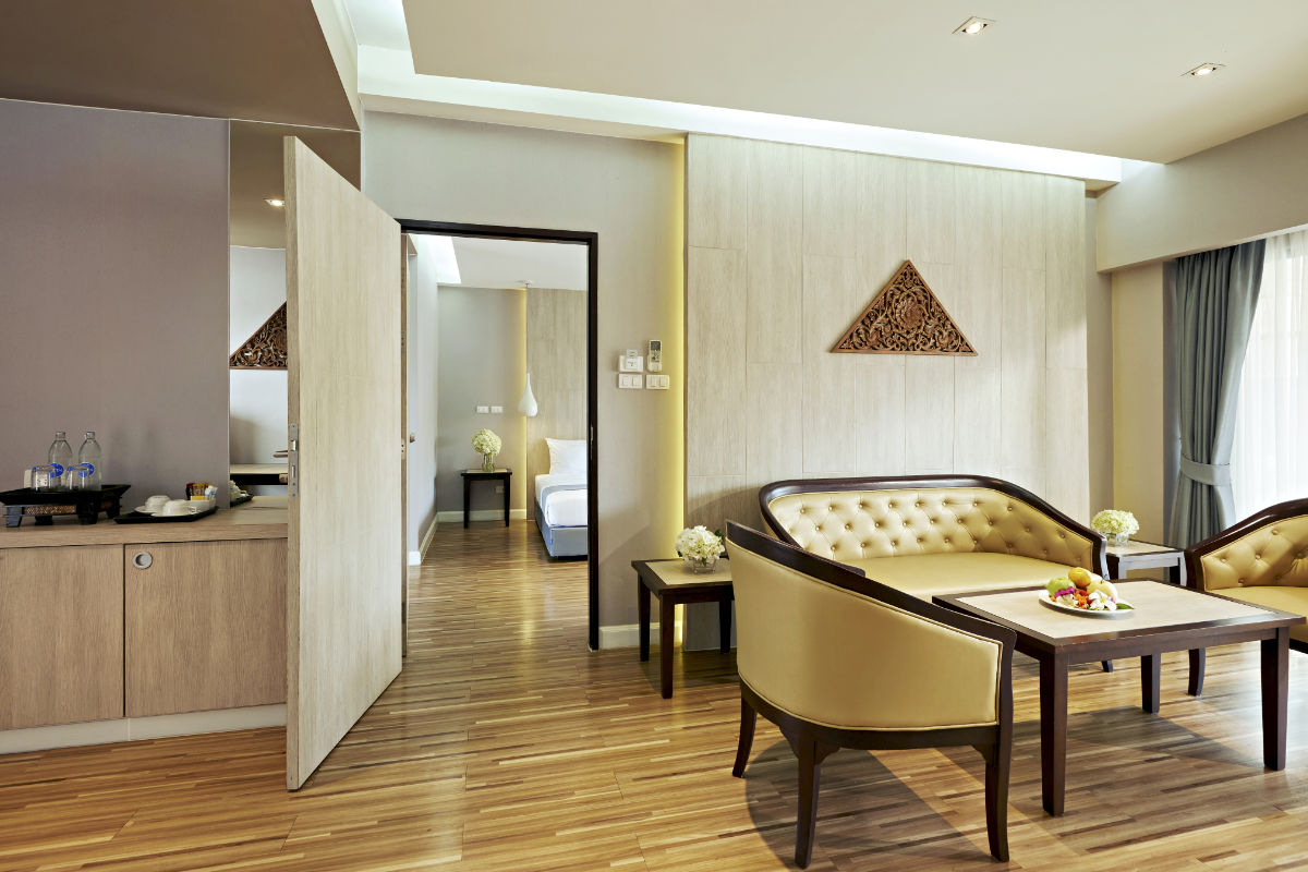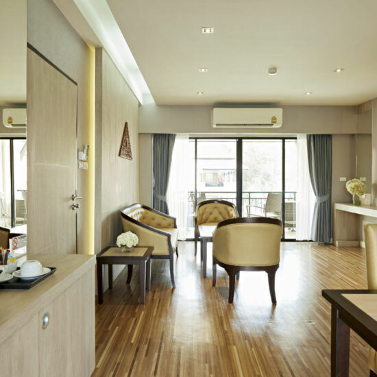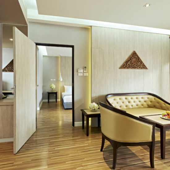 ประทับใจกับการพัก ใน ห้องสวีท 2 ห้องนอน หนึ่งเดียวของโรงแรม ขนาด 110 ตารางเมตร…โอ่อ่ากว้างขวาง เพิ่มเติมพื้นที่ส่วนกลางหรือห้องนั่งเล่น ตู้เสื้อผ้าแบบ walk in โต๊ะรับประทานอาหาร พร้อมทัศนียภาพ งดงาม ของพระอาทิตย์ยามเช้า ทะเลสาบ สระว่ายน้ำหรือสวน ขนาดใหญ่